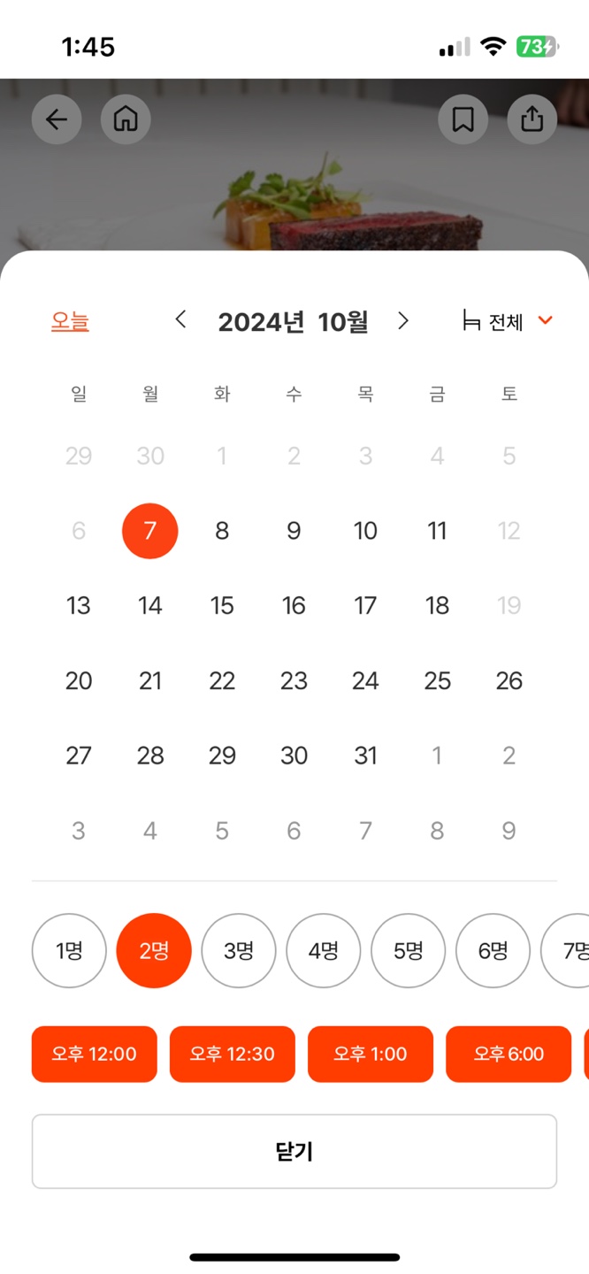- 날짜와 시간, 인원수를 선택 후, 예약을 완료합니다.