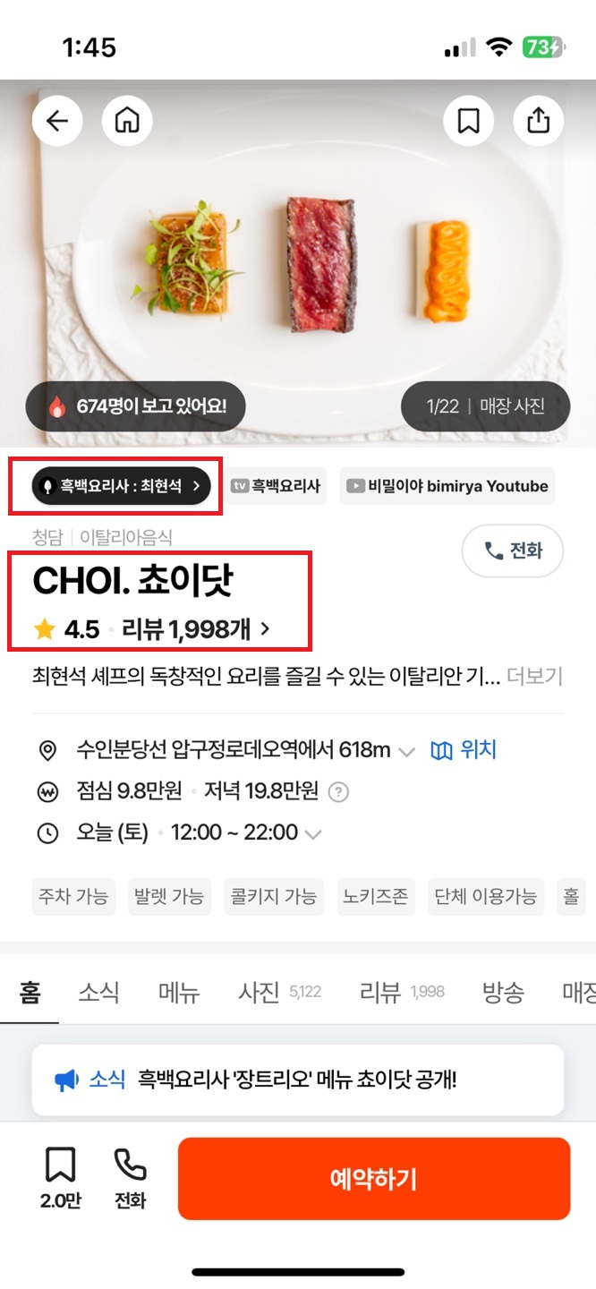 미리 예약을 통해 셰프들의 독창적인 요리를 맛볼 수 있는 것은 흔치 않은 경험입니다. 특히, 흑백요리사 출연 셰프들의 레스토랑은 고급스러운 요리와 탁월한 서비스로 인기라 예약은 필수입니다. 네이버 예약이나 캐치테이블 같은 어플을 이용하면 원하는 날짜에 간편하게 예약할 수 있으니, 맛있는 요리를 꼭 즐겨보시기 바랍니다.